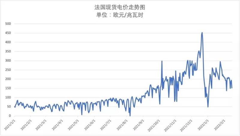 過去一年里,在經(jīng)濟復(fù)蘇、傳統(tǒng)能源投資不足、新能源波動性問題日漸突出及地緣政治等多重因素影響下,歐洲能源價格劇烈上漲,氣價、電價都處在高位,且面臨供應(yīng)危機。在當(dāng)前俄烏沖突的背景下,形勢更加嚴(yán)峻。此外,最近法國有部分核電機組出現(xiàn)運行事故臨時檢修,也都立刻推高了歐洲的現(xiàn)貨電價。