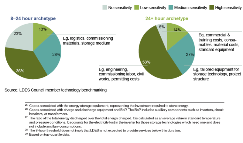 圖25 長(zhǎng)時(shí)儲(chǔ)能對(duì)前四分之一和中位數(shù)性能數(shù)據(jù)的資本支出降低