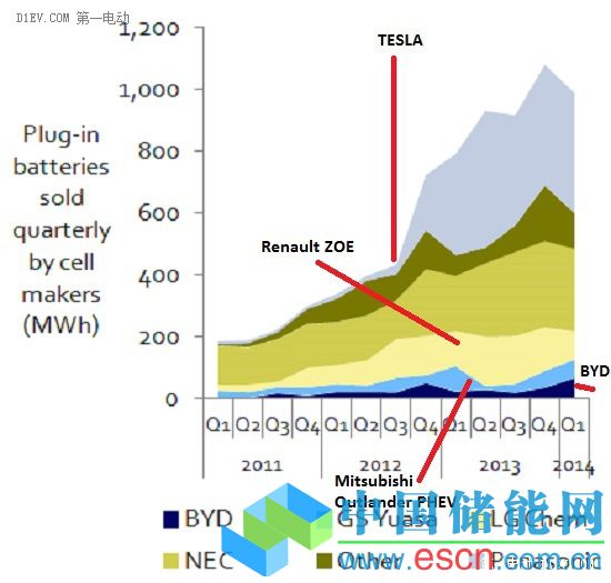 該機(jī)構(gòu)的分析師Cosmin Laslau表示,即使電動(dòng)汽車(chē)銷(xiāo)量不到汽車(chē)銷(xiāo)量的1%,松下和NEC等電池公司也能獲得巨大的利潤(rùn)。對(duì)電池廠(chǎng)商來(lái)說(shuō),電動(dòng)汽車(chē)動(dòng)力傳動(dòng)系統(tǒng)最有利可圖。混合動(dòng)力汽車(chē)市場(chǎng)規(guī)模很大,例如豐田普銳斯是日本和美國(guó)加州的暢銷(xiāo)車(chē),其小型電池組的能量存儲(chǔ)需求比純電動(dòng)汽車(chē)少得多。2014年第一季度,混合動(dòng)力汽車(chē)的電池需求為481MWh,而純電動(dòng)汽車(chē)的電池需求為774 MWh。汽車(chē)行業(yè)原始設(shè)備生產(chǎn)商(OEM) 的需求方面,混動(dòng)巨頭豐田為28%,特斯拉為24%,雷諾-日產(chǎn)為21%。