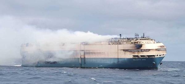 從當(dāng)?shù)貢r(shí)間2月16日至今,一艘載有3965輛大眾集團(tuán)汽車的國(guó)際集裝箱貨輪仍在北大西洋亞述爾群島附近洋面上持續(xù)燃燒。
