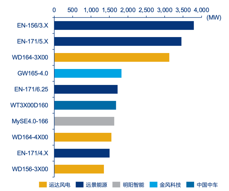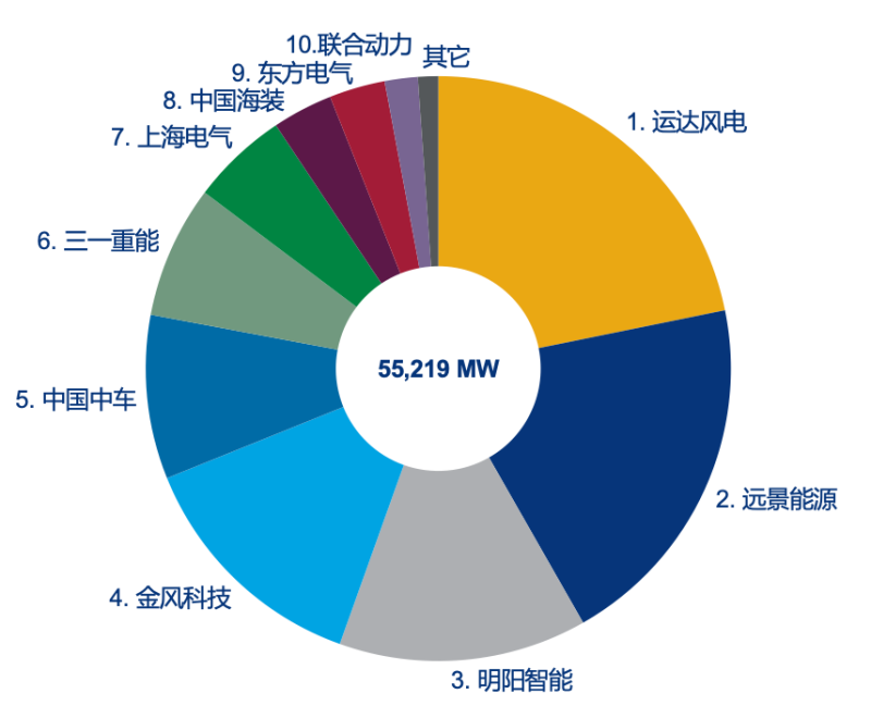 明陽智能的海上風電業(yè)務在海外市場取得了突破性進展,并積極參與漂浮式海上風機的研發(fā)。金風科技上半年訂單表現(xiàn)差強人意,跌出年度排行前三,但全新中速永磁產(chǎn)品(GWH系列機型)的面世為其在下半年贏得大量訂單。