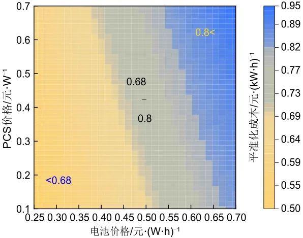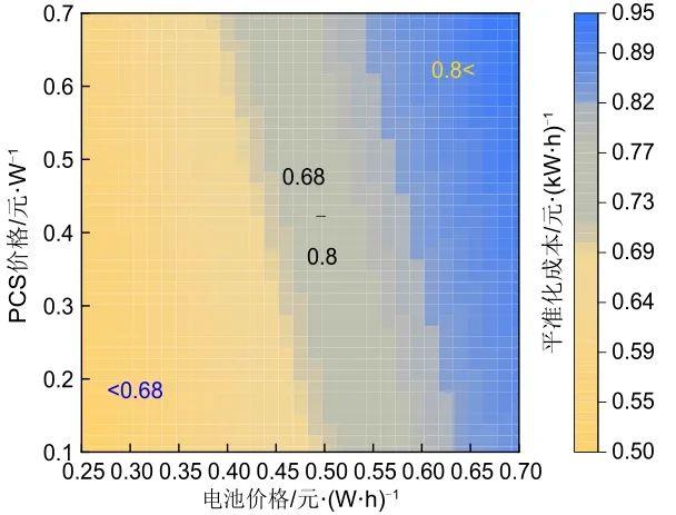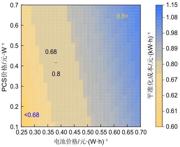 圖7 2500次循環(huán)壽命下平準(zhǔn)化成本