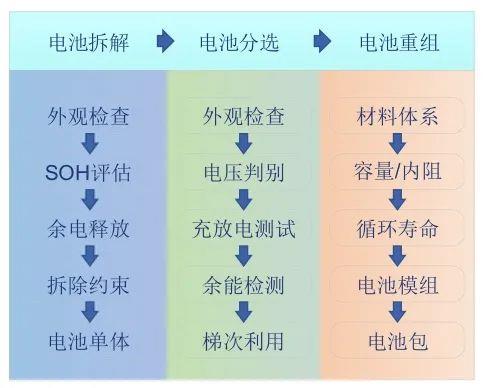 為了使退役電池能夠安全可靠經(jīng)濟(jì)地梯次利用于儲(chǔ)能系統(tǒng),動(dòng)力電池退役后需經(jīng)過(guò)如圖2所示流程再進(jìn)行梯次利用[10]。