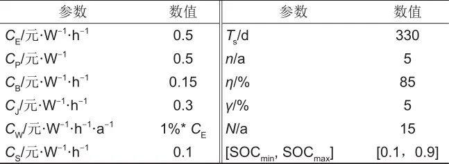 表 1 儲(chǔ)能系統(tǒng)參數(shù)