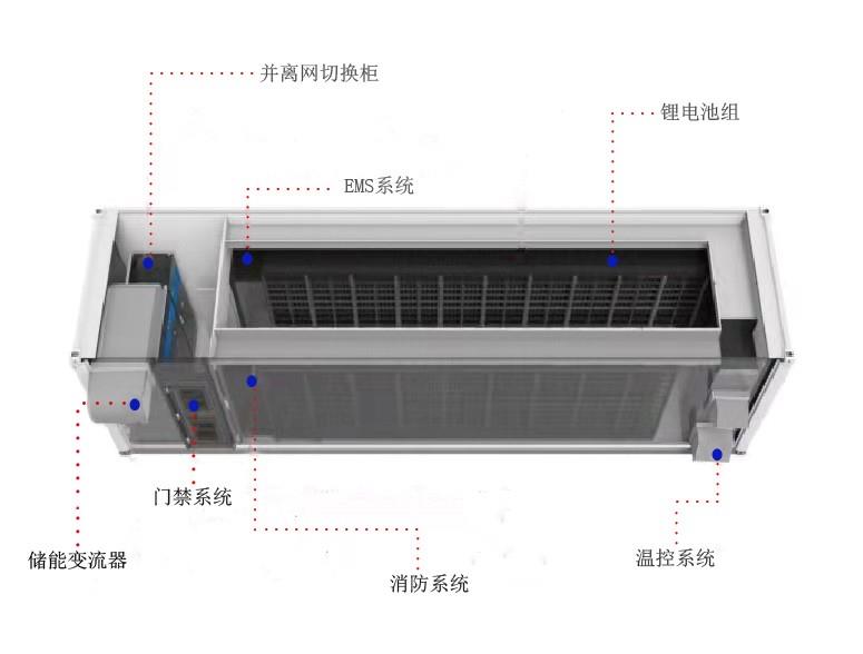 產(chǎn)品概述:集裝箱式電池儲能系統(tǒng),其系統(tǒng)集成度高,可定制化設(shè)計,滿足不同客戶需求,系統(tǒng)包含磷酸鐵鋰儲能電池、PCS儲能變流器EMS能量管理系統(tǒng)、散熱系統(tǒng)、消防系統(tǒng)、門禁系統(tǒng)應(yīng)急逃生門;具備完善的通訊、監(jiān)測、管理、控制、預(yù)警和保護功能;長時間持續(xù)安全運行,可通過上位機對系統(tǒng)運行狀態(tài)進行檢測,具備豐富的數(shù)據(jù)分析能力,具備應(yīng)急電源功能。