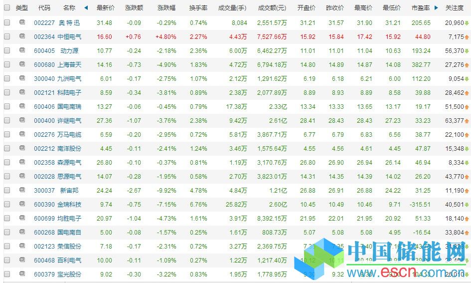 今日新能源汽車版塊暴跌,新宙邦(300037)跌9.92%,金瑞科技(600390)跌7.15%,萬向錢潮(000559)跌5.62%,江蘇國泰(002091)跌5.53%,上海普天(600680)跌4.90%,均勝電子(600699)跌4.73%,比亞迪(002594)跌2.26%,許繼電器(000400)、南洋股份(002212)、動力源(600405)、科陸電子(002121)、萬馬電纜(002276)等跌幅超2%。