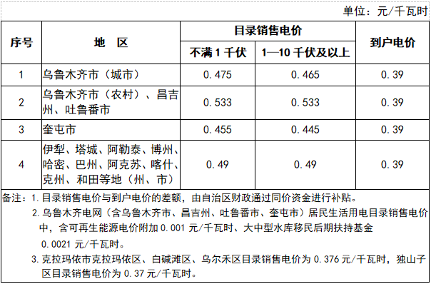 附件:新疆電網(wǎng)居民生活、農(nóng)業(yè)生產(chǎn)用電目錄銷售電價表