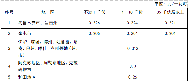 新疆電網(wǎng)農(nóng)業(yè)生產(chǎn)用電目錄銷售電價表