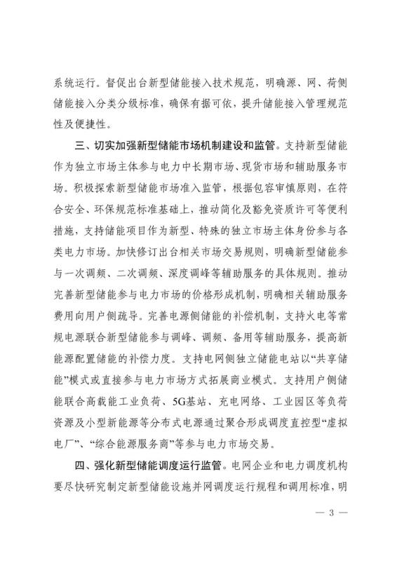 同時(shí)文件指出,明確新型儲(chǔ)能參與一次調(diào)頻、二次調(diào)頻、深度調(diào)峰等輔助服務(wù)的具體規(guī)則。推動(dòng) 完善新型儲(chǔ)能參與電力市場(chǎng)的價(jià)格形成機(jī)制,明確相關(guān)輔助服務(wù)費(fèi)用向用戶側(cè)疏導(dǎo)。完善電源側(cè)儲(chǔ)能的補(bǔ)償機(jī)制,支持火電等常規(guī)電源聯(lián)合新型儲(chǔ)能參與調(diào)峰、調(diào)頻、備用等輔助服務(wù),提高新能源配置儲(chǔ)能的補(bǔ)償力度。支持電網(wǎng)側(cè)獨(dú)立儲(chǔ)能電站以“共享儲(chǔ)能”模式或直接參與電力市場(chǎng)方式拓展商業(yè)模式。