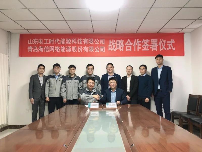 中國儲(chǔ)能網(wǎng)訊:2月28日,山東電工時(shí)代能源科技有限公司(電工時(shí)代)與青島海信網(wǎng)絡(luò)能源股份有限公司(海信網(wǎng)絡(luò))在濟(jì)南舉行戰(zhàn)略合作簽約儀式,這標(biāo)志著雙方正式攜手開啟合作新征程。電工時(shí)代副總經(jīng)理于建斌,海信網(wǎng)絡(luò)事業(yè)部副總經(jīng)理劉文瓊分別代表雙方在“電工時(shí)代-海信網(wǎng)絡(luò)戰(zhàn)略合作協(xié)議書”上簽字。電工時(shí)代董事長、總經(jīng)理秦偉,電工電氣集團(tuán)工業(yè)營銷中心副總經(jīng)理于洋,產(chǎn)品中心負(fù)責(zé)人周慶慶,市場部負(fù)責(zé)人張凱,海信網(wǎng)絡(luò)總經(jīng)理王存軍,,研發(fā)副部長郭強(qiáng),產(chǎn)品管理部部長谷培信共同見證。