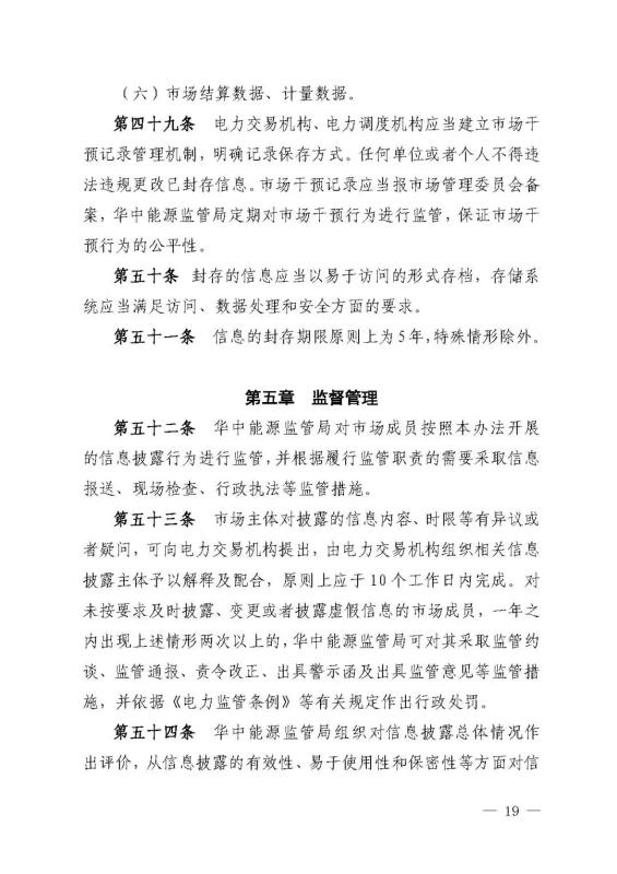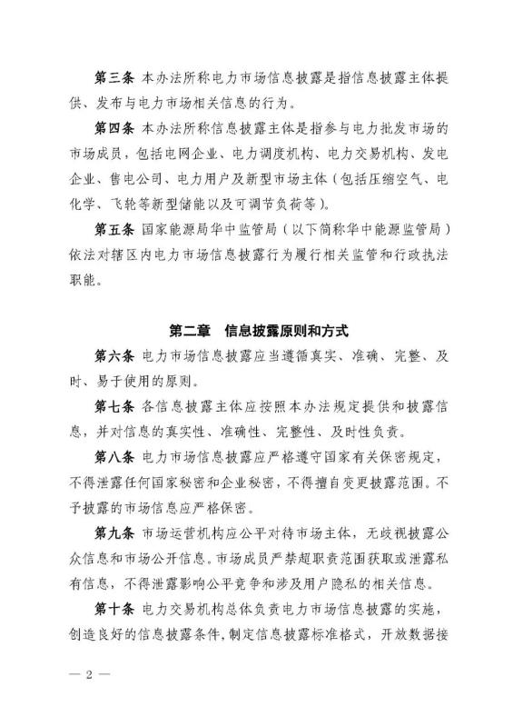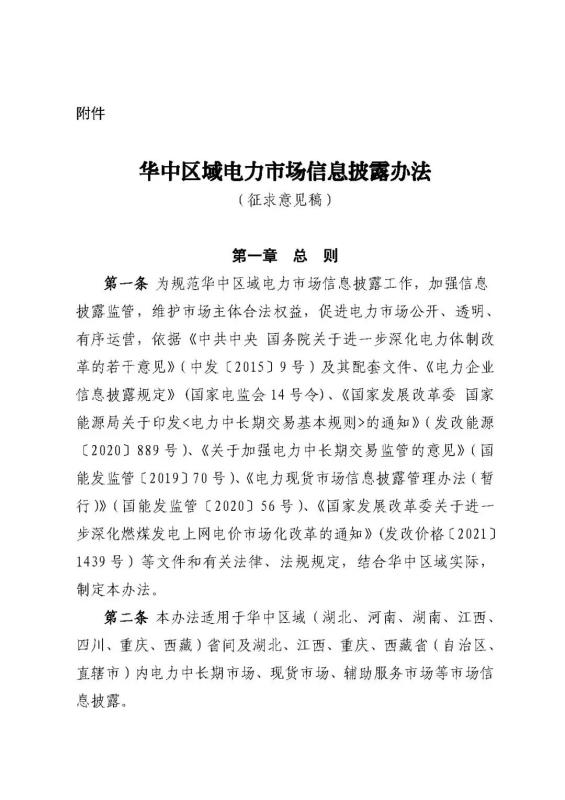 中國儲能網(wǎng)訊:為進一步規(guī)范華中區(qū)域電力市場信息披露工作,加強信息披露管理,保障市場成員合法權益,維護市場成員知情權,華中能源監(jiān)管局組織起草了《華中區(qū)域電力市場信息披露辦法(征求意見稿)》,現(xiàn)向社會公開征求意見。