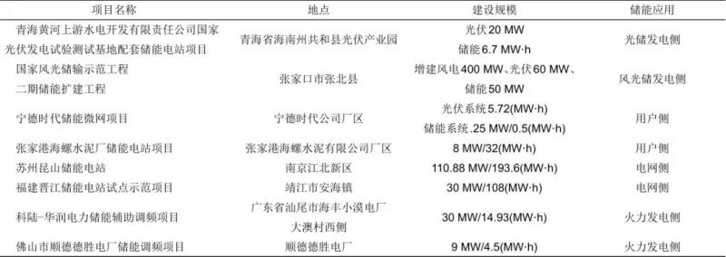 2020年,國家能源局從技術(shù)先進、自主創(chuàng)新、綜合效益等七個維度評選出首批儲能科技創(chuàng)新示范項目,如表3所示。首批示范項目總結(jié)了儲能在不同地域、不同應(yīng)用領(lǐng)域的發(fā)展情況,鼓勵相關(guān)儲能企業(yè)大膽嘗試、大膽實踐,為廣泛推廣儲能在電力系統(tǒng)的應(yīng)用發(fā)揮典型和示范作用,以推動儲能產(chǎn)業(yè)高質(zhì)量發(fā)展。