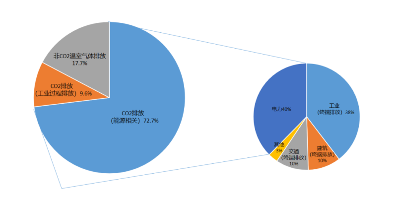 2020年我國碳排放結(jié)構(gòu)圖(資料來自清華大學氣候變化與可持續(xù)發(fā)展研究院)