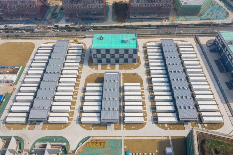 平高集團投資興建的南京江北儲能電站,是國網南京“源網荷儲”核心要素之一。“該工程不僅是目前國內電網多站融合的樣板優(yōu)質工程,同時也是南京市最大的“充電寶”。最大充放電功率110.88兆瓦,可儲存約22萬度電(冗余配置),交流側可放出193.6兆瓦時?!逼礁呒瘓F克服時間緊任務重和疫情帶來的不利困難,終于建成并完成了全站全套儲能設備通過現場安裝調試。整站采用標準現代化風格設計,建設規(guī)模為110.88MW/193.6MWh,由88個預制艙式儲能電池、176臺630kW儲能變流器(PCS),44臺2800kVA升壓變(帶箱殼)、44臺10kV就地開關柜及10kV配電裝置等組成。