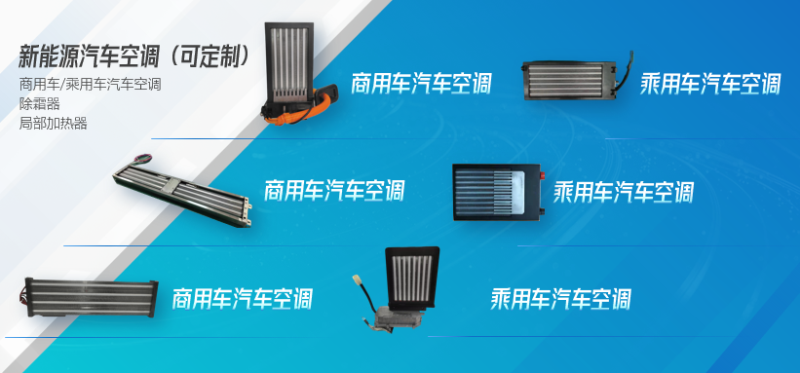 新能源汽車暖風系列。商用車汽車空調、乘用車汽車空調、波紋式除霜器、局部加熱器。