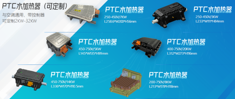 新能源汽車水暖系列。PTC水加熱器(商用車、乘用車空調)、氫燃料電池。