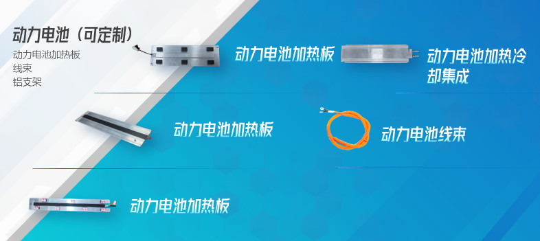 動力電池系列。動力電池PTC加熱板、動力電池鋁支架、動力電池線束、電池加熱冷卻集成。
