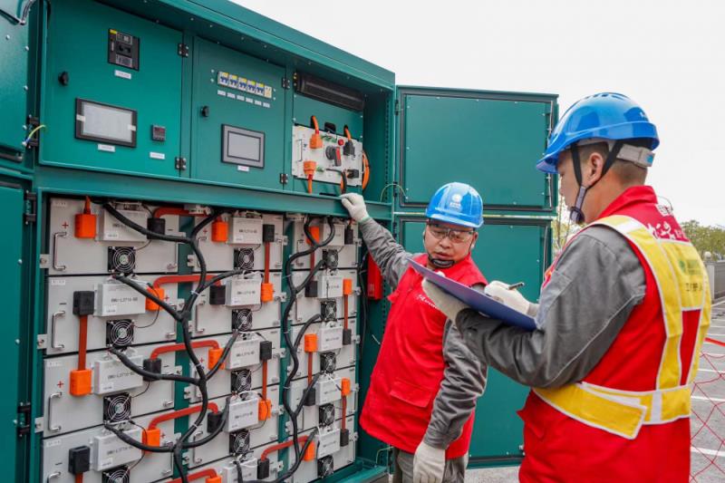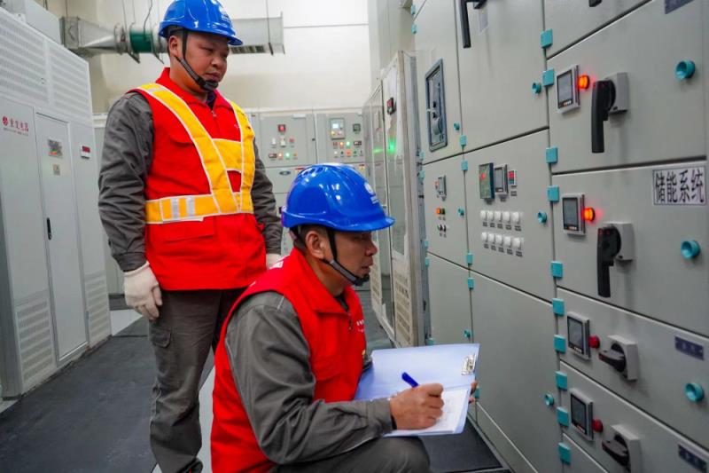▲工人校對儲能設(shè)備電力參數(shù)
