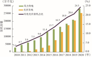 圖2 我國風電和光伏發(fā)電累計裝機和占比