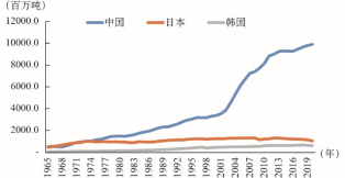圖1 1965年—2020年中、日、韓能源領(lǐng)域二氧化碳排放情況