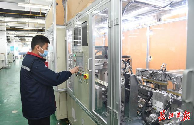 2022年2月22日,武漢逸飛激光股份有限公司技術(shù)人員在操作自主研發(fā)的全極耳電池生產(chǎn)線。長(zhǎng)江日?qǐng)?bào)記者高勇 攝