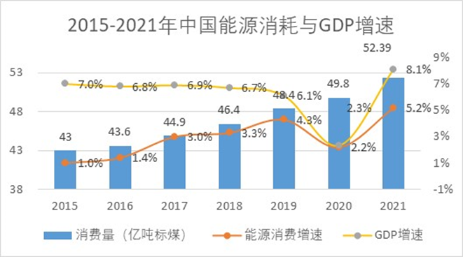 圖1 2015-2021年GDP、能耗增長(zhǎng)情況