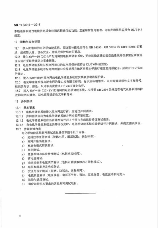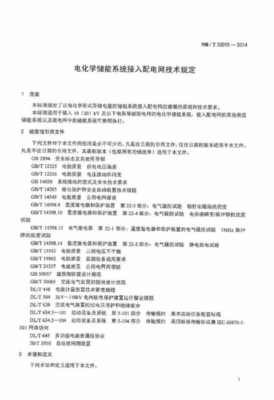 NB∕T 33015-2014 電化學(xué)儲(chǔ)能系統(tǒng)接入配電網(wǎng)技術(shù)規(guī)定