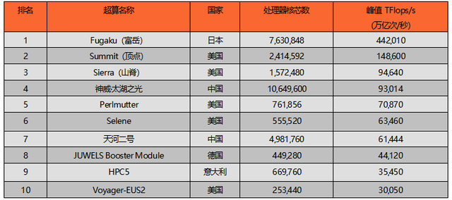 根據(jù) Top500.org 網(wǎng)站 2021 年 11 月發(fā)布的全球超級計算機五百強榜單,Top500中,中國以總量173 臺超級計算機蟬聯(lián)第一名,其次是美國的149 臺位列第二。雖然仍在榜首,但相對美國的數(shù)量優(yōu)勢已從 2020 年的領先 101 臺縮窄至僅僅領先 24 臺。榜單 Top100 中,中國超算數(shù)量由 3 臺減少至 2 臺,而美國、日本、德國分別有 34、14、12 臺。Top10 中美國占到一半,中國占 2 席,僅次于美國,日本、德國和意大利各站一席。從單核算力來看,中國上榜的超算中心速度領先,但幾乎比美國小了一個量級。