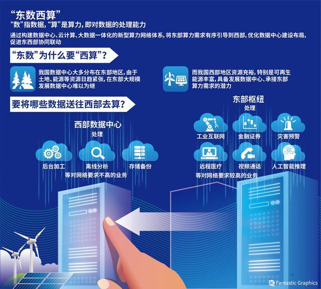 “‘東數西算’中不是單純地將東部的算力需求一股腦全部引導到西部,而是更多地強調根據數據存儲地以及算力的需求,匹配相應的樞紐節(jié)點,從而實現資產配置中的效能最優(yōu)化方案。一方面,在西部發(fā)展數據中心,將后臺加工、存儲備份等對網絡數據傳輸要求不高的業(yè)務率先西遷,另一方面,對于網絡以及算力要求較高的業(yè)務,比如工業(yè)互聯網等則仍可在東部樞紐布局。”暨南大學經濟學院助理教授張毅說。