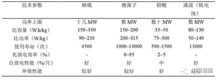 國(guó)際研究機(jī)構(gòu)Navigant對(duì)混合系統(tǒng)定義是:結(jié)合兩種及以上的互補(bǔ)操作特性的儲(chǔ)能技術(shù)的穩(wěn)定儲(chǔ)能系統(tǒng)。而在在全釩液流電池和鋰電池中,兩種儲(chǔ)能技術(shù)具有的各自優(yōu)勢(shì),即鋰電池的高比功率,全釩液流電池的高容量,再結(jié)合成本、技術(shù)成熟度、效率以及壽命等因素,全釩液流電池與鋰電池混合儲(chǔ)能綜合來(lái)說(shuō)可以較好地滿足電力系統(tǒng)對(duì)儲(chǔ)能系統(tǒng)的要求,使得儲(chǔ)能系統(tǒng)同時(shí)具有高電力和高能效的特點(diǎn)。當(dāng)然,也有不少研究嘗試將蓄電池儲(chǔ)能和超級(jí)電容器儲(chǔ)能進(jìn)行結(jié)合的混合儲(chǔ)能方式,目前也進(jìn)入了示范站建設(shè)初期階段,在未來(lái)也有非常大的發(fā)展空間。不同蓄電池儲(chǔ)能技術(shù)比較如下表所示[2]。