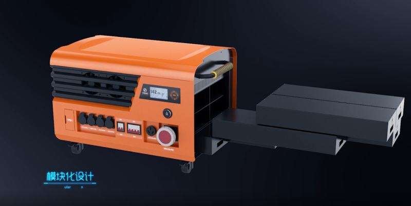 千乘動力整機尺寸為900mm*600mm*586mm。機身和電芯模塊進行分離式設(shè)計,可以支持4組或5組靈活配置使用。分為1個機身,6個高能量密度電芯標準模塊,內(nèi)置有電子鎖、工作狀態(tài)下不可分離,保證設(shè)備運行狀態(tài)下的安全。電芯模塊插拔方便,單個模塊重25kg,機身種30kg,兩個人可輕松搬運,解決了燃油發(fā)電機和常規(guī)移動大儲能搬運不便的問題。