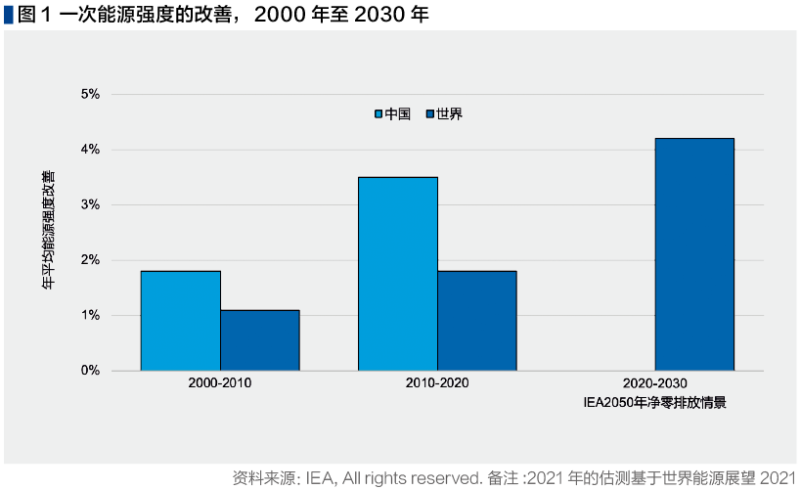 改善能源強(qiáng)度將為助力中國實(shí)現(xiàn)在2030年前二氧化碳排放達(dá)到峰值,并在2060年前實(shí)現(xiàn)碳中和的目標(biāo)方面發(fā)揮關(guān)鍵作用