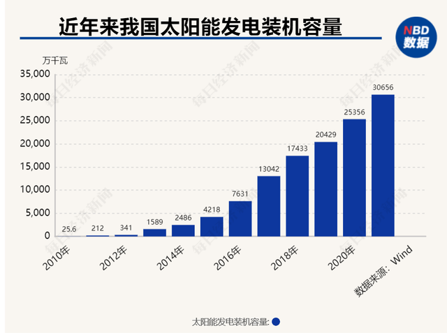 近年來我國太陽能發(fā)電裝機容量迅猛增長,到2021年已超過3億千瓦