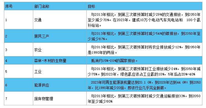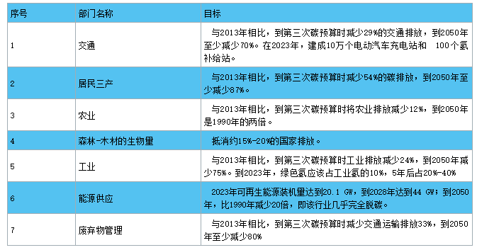 法國(guó)在《國(guó)家低碳戰(zhàn)略》中闡述了碳中和目標(biāo)實(shí)現(xiàn)路徑,總的來看,法國(guó)的碳中和實(shí)現(xiàn)路徑將歐盟所有部門分為七類,每個(gè)部門都單獨(dú)設(shè)立了具體的減排目標(biāo)。