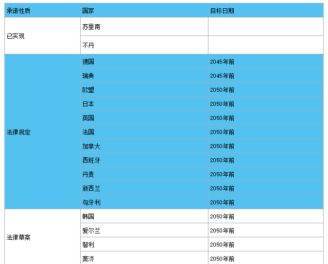 1.多個(gè)發(fā)達(dá)國(guó)家將碳中和目標(biāo)寫入法律