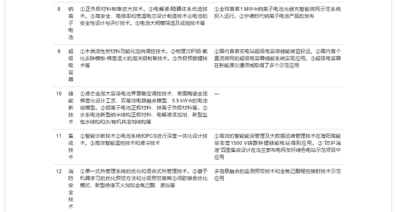 第一類為系統(tǒng)規(guī)模提升或者性能提升的集成示范,主要包括抽水蓄能、鋰離子電池、壓縮空氣儲能和儲熱儲冷等。第二類為驗證關鍵技術突破的集成示范,主要包括鋰離子電池、液流電池、壓縮空氣儲能和飛輪儲能等。第三類為該類技術的首次集成示范,主要包括鈉離子電池、超級電容器等。