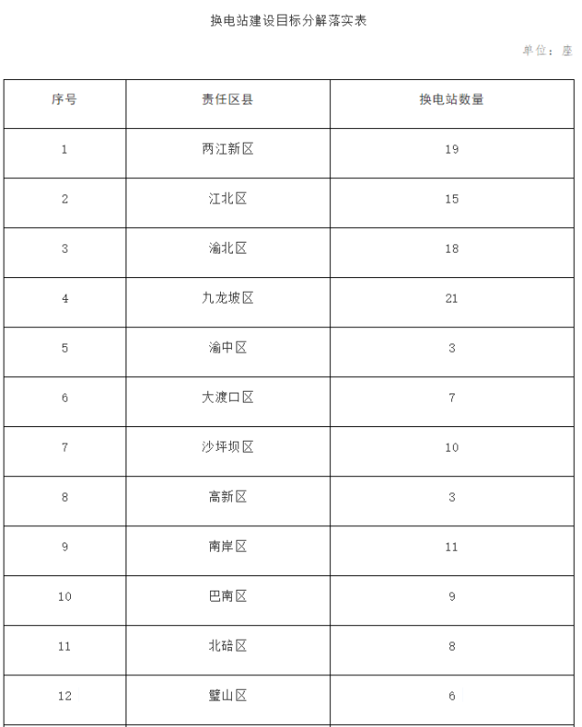 (一)科學合理規(guī)劃布局。優(yōu)先在兩江新區(qū)、江北區(qū)、南岸區(qū)、重慶高新區(qū)、綦江區(qū)、永川區(qū)、萬州區(qū)、黔江區(qū)、長壽區(qū)等區(qū)域開展試點,加快推動中心城區(qū)全覆蓋。鼓勵有市場需求的區(qū)縣開展試點,形成中心城區(qū)和區(qū)縣聯(lián)動的換電網絡體系,逐步實現(xiàn)全市覆蓋。各區(qū)縣應結合本地區(qū)電動汽車推廣和市場需求,合理規(guī)劃布局,在滿足相關安全控制要求的前提下,充分利用現(xiàn)有充電場站、停車場、P+R停車場、加油(加氣)站等已有場地資源加快換電站建設,全面推進形成全市公交站、火車站、機場、碼頭、高速公路等交通熱點區(qū)域全覆蓋的換電網絡布局。(責任單位:市規(guī)劃自然資源局、市住房城鄉(xiāng)建委、市經濟信息委、市交通局,區(qū)縣政府,國網重慶市電力公司)