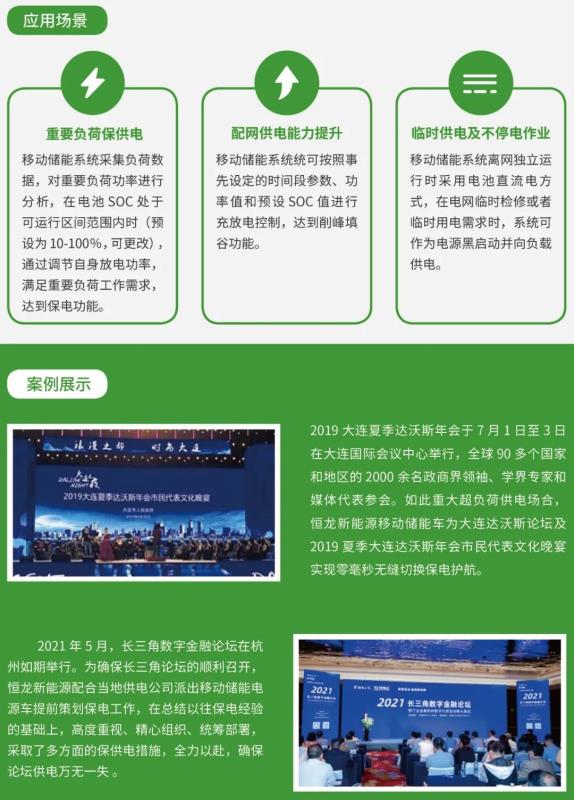 冬奧賽事、生活保障用電要求非常高,恒龍新能源提供的多臺移動儲能保電設備作為冬奧會供電保障工作的利器,不僅具有低噪音、零污染、電能優(yōu)質(zhì)等優(yōu)勢,還可實現(xiàn)離并網(wǎng)毫秒級切換,能有效支持應急備電供電和配網(wǎng)臺區(qū)應急供電。