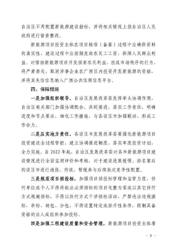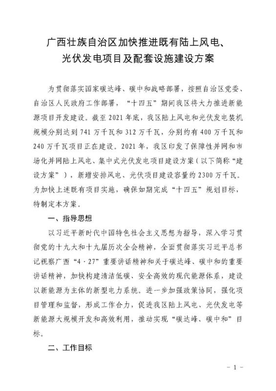 中國儲(chǔ)能網(wǎng)訊:3月10日,廣西壯族自治區(qū)發(fā)改委發(fā)布加快推進(jìn)既有陸上風(fēng)電、光伏發(fā)電項(xiàng)目及配套設(shè)施建設(shè)方案。