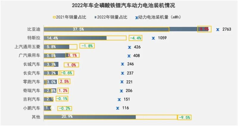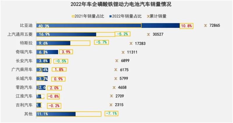 比亞迪旗下大部分車型均搭載自家磷酸鐵鋰刀片電池,1月所售磷酸鐵鋰車型中,超過40%的車型產(chǎn)自比亞迪。上汽通用五菱、特斯拉、奇瑞、長安、廣汽乘用車、長城汽車、零跑汽車、吉利汽車、小鵬汽車,江淮汽車,旗下入門級新能源車型在磷酸鐵鋰動力電池的裝載上,均有傾向。