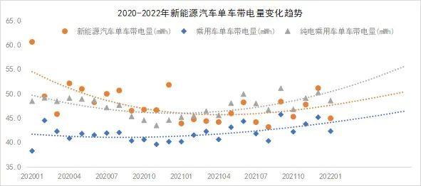 按理說隨著動力電池性能的提升,新能源汽車平均單車帶電量應呈現(xiàn)上升趨勢,但是2020至今新能源汽車平均單車帶電量變化趨勢明顯更加復雜。這背后是因為國內(nèi)新能源汽車市場結(jié)構的不斷調(diào)整。