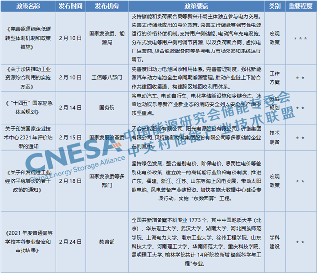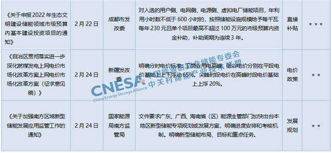 中國儲(chǔ)能網(wǎng)訊:2月儲(chǔ)能政策從國家到地方共有30余項(xiàng)發(fā)布或征求意見,涉及頂層規(guī)劃、直接補(bǔ)貼、示范項(xiàng)目征集、現(xiàn)貨市場、輔助服務(wù)市場等方面,中關(guān)村儲(chǔ)能產(chǎn)業(yè)技術(shù)聯(lián)盟對(duì)本月儲(chǔ)能政策進(jìn)行了梳理解讀,希望與業(yè)界同仁共同交流探討。