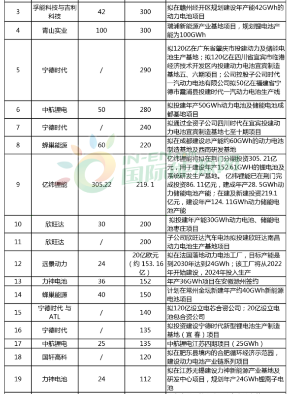 鋰電各企業(yè)擴(kuò)產(chǎn)競爭進(jìn)入白熱化階段。寧德時(shí)代和比亞迪的600GWH之外,億緯鋰能公告稱,公司計(jì)劃在荊門市完成固定資產(chǎn)投資305.21億元建設(shè)年產(chǎn)152.61GWh的荊門動(dòng)力儲(chǔ)能電池產(chǎn)業(yè)園項(xiàng)目;孚能科技與吉利科技在贛州投資300億,建設(shè)42GWh 動(dòng)力電池項(xiàng)目;鵬輝能源在廣西規(guī)劃20GWh的動(dòng)力電池工廠;中創(chuàng)新航分別在廈門和武漢建設(shè)30GWh和20GWh的動(dòng)力電池項(xiàng)目;根據(jù)儲(chǔ)能頭條(微信公眾號(hào):chuneng365)不完全統(tǒng)計(jì),僅2021年各電池企業(yè)公布的鋰電項(xiàng)目產(chǎn)能超過1240GWh。