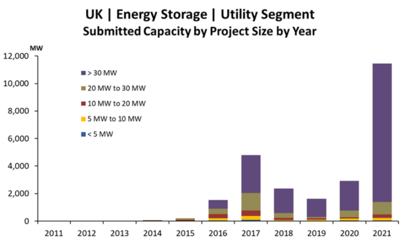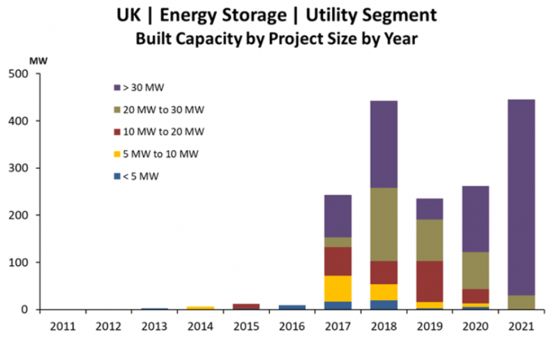 中國(guó)儲(chǔ)能網(wǎng)訊:從2016年開(kāi)始,英國(guó)能源市場(chǎng)對(duì)電池儲(chǔ)能系統(tǒng)(BESS)的需求不斷增長(zhǎng),使其成為當(dāng)今全球市場(chǎng)領(lǐng)先的活動(dòng)中心之一。英國(guó)的公用事業(yè)規(guī)模儲(chǔ)能活動(dòng)在2021年強(qiáng)勁增長(zhǎng),與2020年相比,年度部署量增長(zhǎng)了70%。此外,到2021年底,未來(lái)項(xiàng)目的管道增加了11吉瓦,達(dá)到27吉瓦以上。