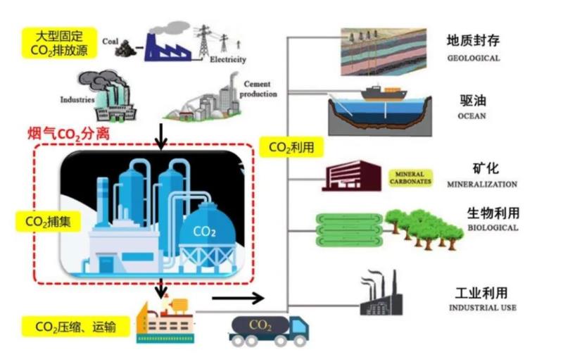 圖3 碳捕集、利用與封存過(guò)程(圖源:浙江省電力學(xué)會(huì))