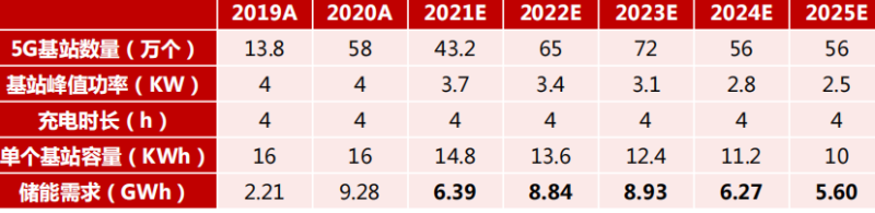 2023年每萬人享18個(gè)5G基站,2025年每萬人享26個(gè)(工信部預(yù)期數(shù)據(jù))。民生證券預(yù)計(jì)2022-2025年的裝機(jī)量分別為8.84,8.93,6.27,5.60GWh。新增裝機(jī)量的21-25年年復(fù)合增長率約104.5%。