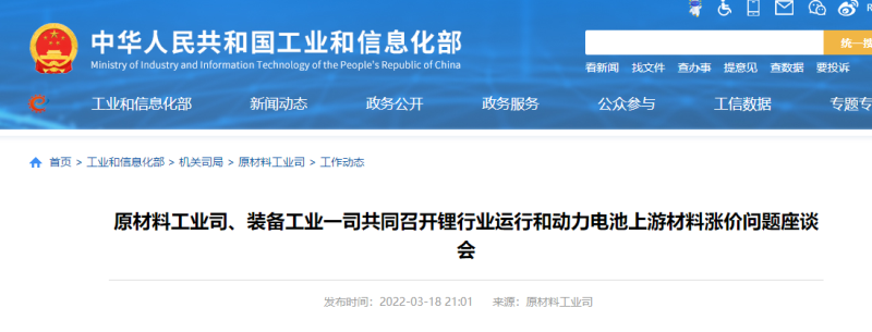 會(huì)議聽取了重點(diǎn)企業(yè)生產(chǎn)、擴(kuò)產(chǎn)和銷售情況,分析了當(dāng)前資源開發(fā)和擴(kuò)大生產(chǎn)供給方面面臨的瓶頸問題,針對(duì)近期出現(xiàn)的鋰資源及鋰鹽產(chǎn)品價(jià)格大幅上漲問題,圍繞鋰鹽產(chǎn)品市場(chǎng)價(jià)格形成機(jī)制、生產(chǎn)消費(fèi)情況、動(dòng)力電池產(chǎn)業(yè)受影響情況、保供穩(wěn)價(jià)政策措施等進(jìn)行了充分交流。