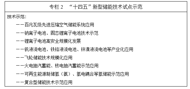 專欄2 “十四五”新型儲能技術(shù)試點示范
