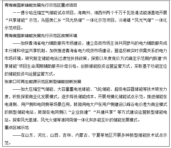 加快重點區(qū)域試點示范。積極開展區(qū)域性儲能示范區(qū)建設(shè),鼓勵各地因地制宜開展新型儲能政策機(jī)制改革試點,推動重點區(qū)域新型儲能試點示范項目建設(shè)。結(jié)合以沙漠、戈壁、荒漠地區(qū)為重點的大型風(fēng)電光伏基地建設(shè)開展新型儲能試點示范;加快青海省國家儲能發(fā)展先行示范區(qū)建設(shè);加強(qiáng)河北、廣東、福建、江蘇等地首批科技創(chuàng)新(儲能)試點示范項目跟蹤評估;統(tǒng)籌推進(jìn)張家口可再生能源示范區(qū)新型儲能發(fā)展。鼓勵各地在具備先進(jìn)技術(shù)、人才隊伍和資金支持的前提下,大膽先行先試,開展技術(shù)創(chuàng)新、模式創(chuàng)新以及體制機(jī)制創(chuàng)新試點示范和應(yīng)用。