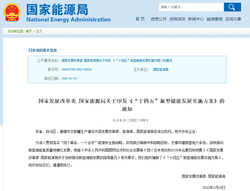 國家發(fā)展改革委 國家能源局關(guān)于印發(fā)《“十四五”新型儲能發(fā)展實施方案》的通知